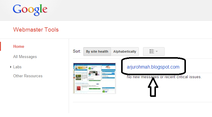 4. Setelah masuk akun Google Webmaster Tools, klik URL blog seperti gambar di di bawah ini :